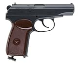 Umarex Makarov pistol CO2-powered Uses one 12-gram CO2 cartridge Shoots steel BBs 16-shot removable BB mag Double- and single-action Fixed front and rear sights Full metal construction Moveable slide Black frame with brown grips Never shoot steel BBs at hard objects ... ... Umarex Makarov 16-shot CO2 BB pistol with removable mag... caliber: 0.177 velocity: 380.00 ft/sec Warranty: One year limited warranty 16-Shot Repeater, Removable Mag